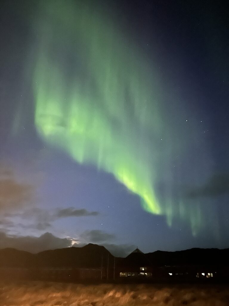 In Tromsø kommen wir bei „unserer Warmshowers-Familie“, bei Bonnie, Basil und deren drei Jungs, unter. Wir werden sehr herzlich aufgenommen. Die Beiden stammen aus Frankreich und Belgien und sind nach dem Studium in Tromsø geblieben. Als Grund hierfür nennen sie in erster Linie die hohe Lebensqualität als Arbeitnehmer:innen, die vorbildliche Vereinbarkeit von Beruf und Familie, das soziale Eingebundensein der Kinder und die tollen Möglichkeiten, sich im Schnee auszutoben, vor allem beim Skitourengehen.