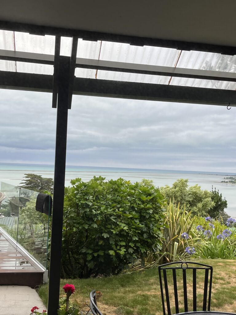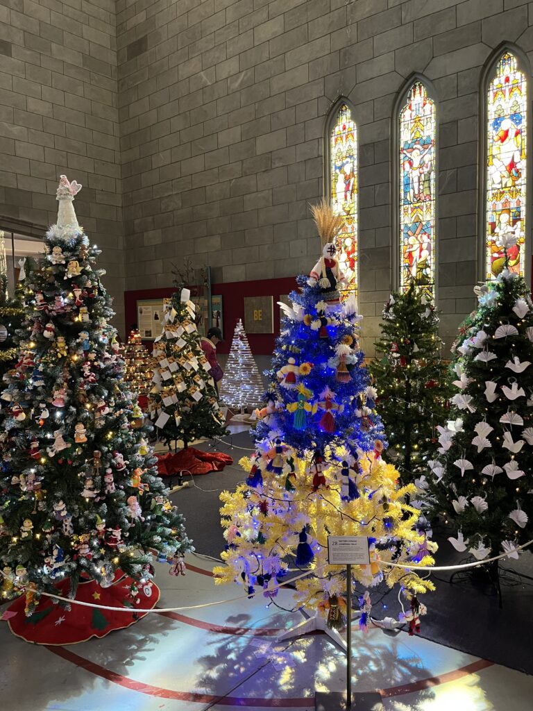 Von der Lage des Hauses von Wendy und Alec sind wir total beeindruckt. Es steht am Hang und man kann durch die großen Fensterfronten nach drei Seiten auf das Meer schauen. Voll krass, das hatten sie uns gar nicht verraten. Wir bekommen einen eigenen Trackt, auch nicht so schlecht nach all diesen Gemeinschaftsbädern oder Plumsklos. Abends werden wir kulinarisch bestens versorgt. Am Tag darauf radelt Alec mit uns in die Stadt. Wir schauen uns die Kathedrale an. Dort gibt es eine Weihnachtsbaumausstellung von karitativen Organisationen.